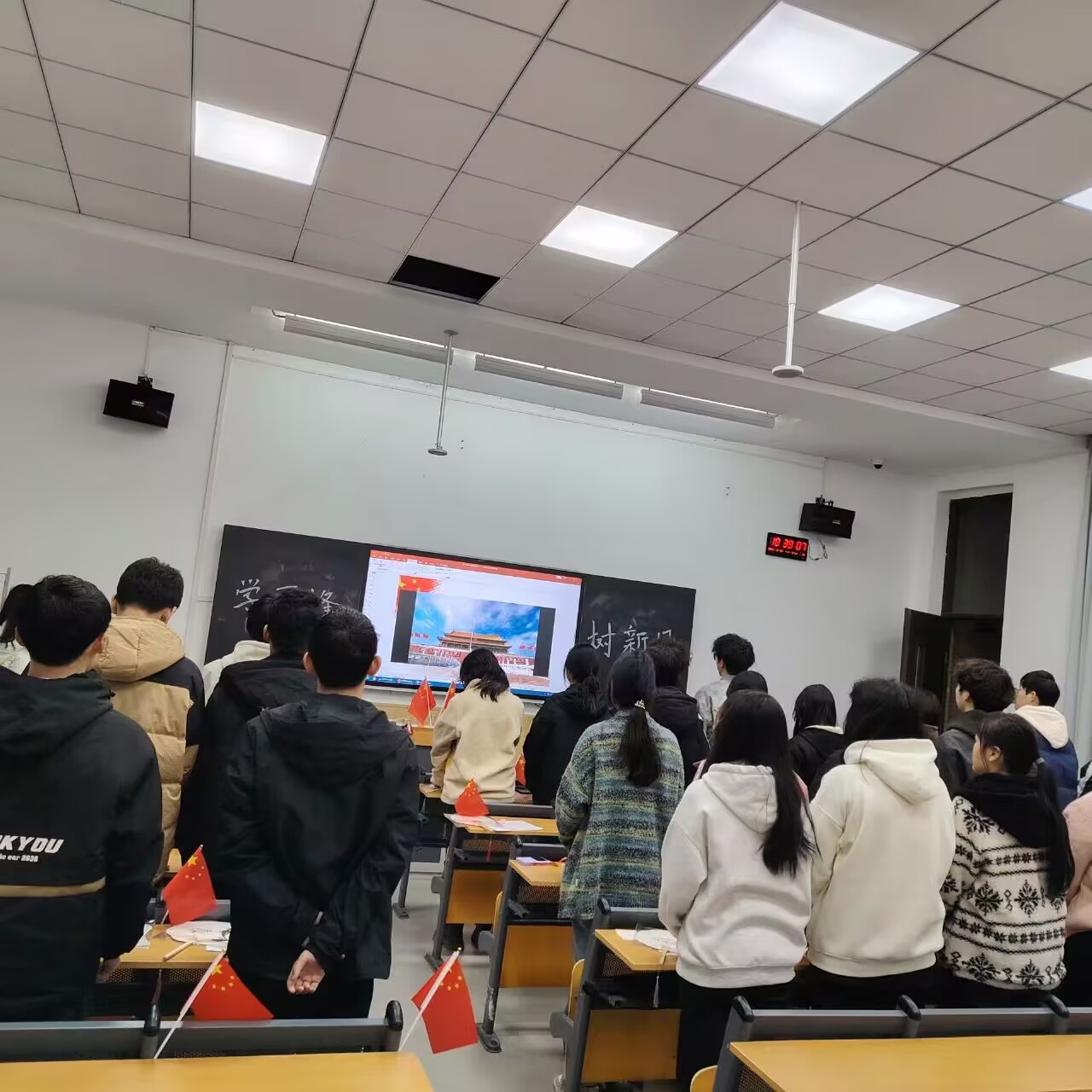 随后,全体成员起立,庄严肃穆的唱响国歌,以此表达对祖国的热爱和对党的忠诚。国歌的旋律萦绕在耳,激荡人心,激励着每一位同学的士气,增强集体的凝聚力。