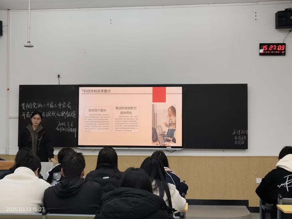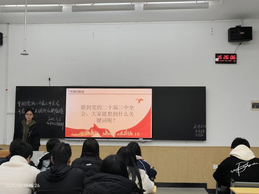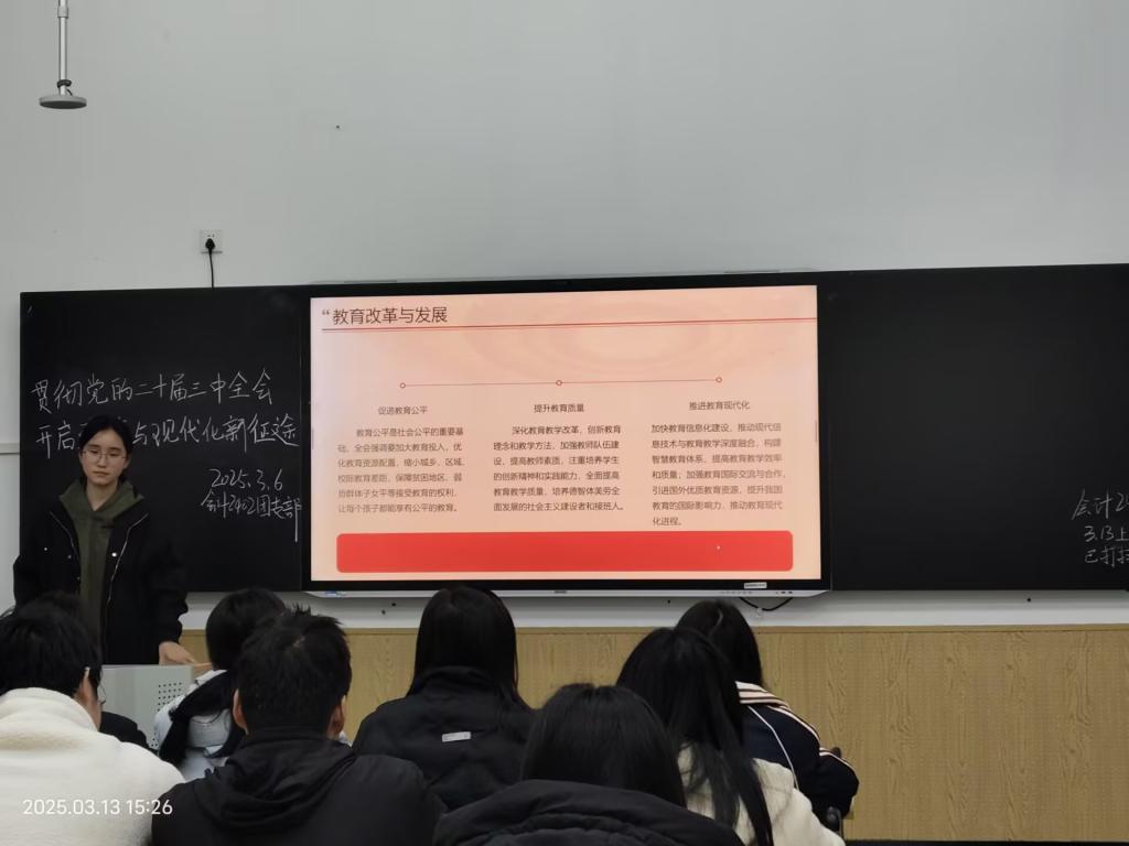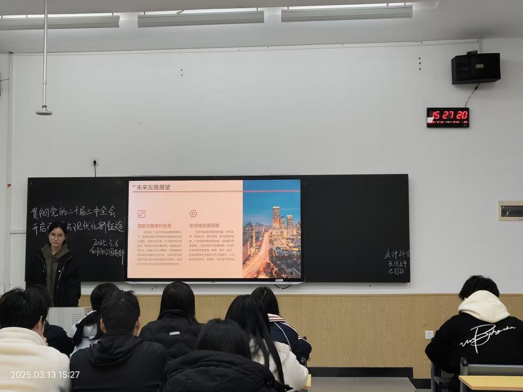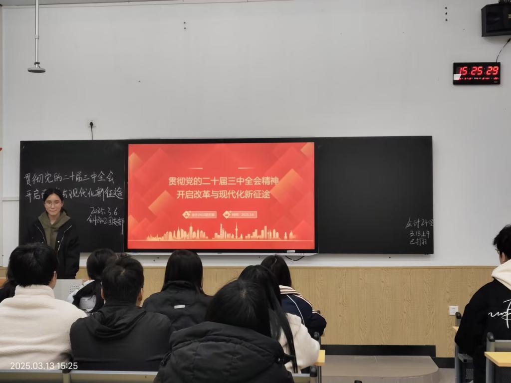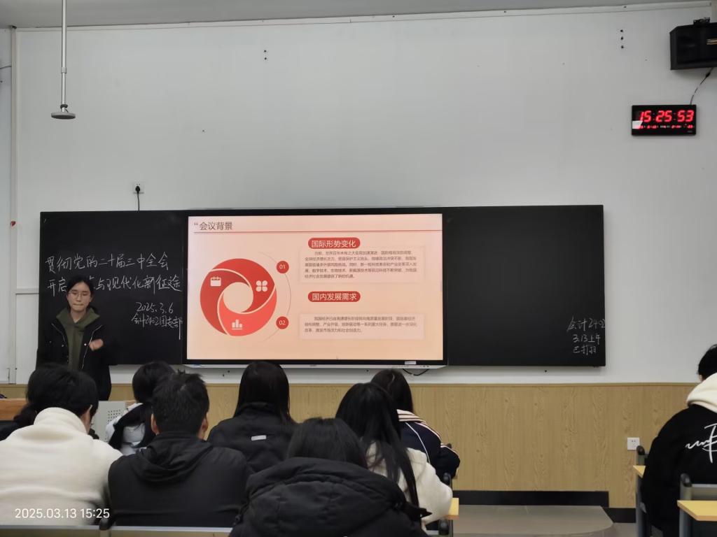 (通讯员:白思羽 辅导员:高梦瑶 )为深入了解并学习党的二十届三中全会精神,会计2402团支部特别策划以“贯彻党的二十届三中全会精神,开启改革与现代化新征途”为主题的团日活动,于2025年3月6日在教1-108召开。参加本次活动的为会计2402团支部全体成员,本次活动由胡维晗同学主持。