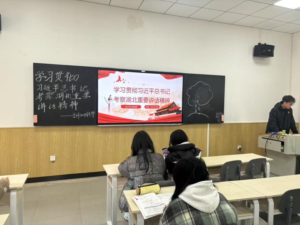 2025年3月6日,为了鼓励团员青年以总书记讲话精神为指引,在新时代新征程中展现新作为,会计2401团支部召开了以“学习贯彻习近平总书记考察湖北重要讲话精神”为主题的团日活动。此次活动由晏珅同学主持,参加人员为会计2401团支部全体成员。