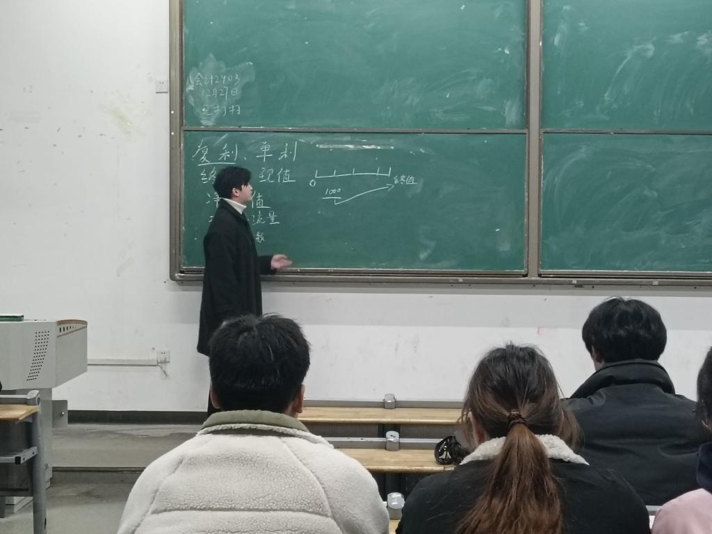 学习会伊始,韩东老师强调了本次活动的目的与重要性,希望同学们借此机会查漏补缺,提升对财务管理知识的整体掌握程度,以饱满的状态迎接期末考试。程振望同学随即展开系统复习,他凭借扎实的专业知识和清晰的思路,将复杂的财务管理概念深入浅出地进行讲解。从财务报表分析的关键指标解读,到资金时间价值的精准计算;从筹资决策的多种方法权衡,到投资项目评估的要点梳理,程振望同学都一一详细阐述,并对财务管理课程的重点、难点知识进行了系统梳理和详细讲解,通过案例分析、真题演练等方式,帮助同学们加深对知识点的理解与掌握,现场学习氛围浓厚。