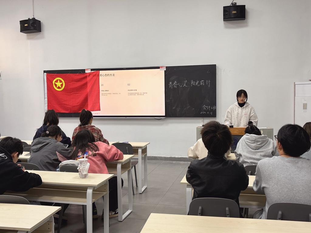 (通讯员:鲁扬浩 指导老师:高梦瑶)为深切关注老员工的心理健康状况。会计2406团支部特别策划以“青春心灵,阳光前行”为主题的团日活动,于2024年11月11日在教1-112召开。参加本次活动的成员为会计2406团支部全体,本次活动由团支书罗雅婷同学主持。