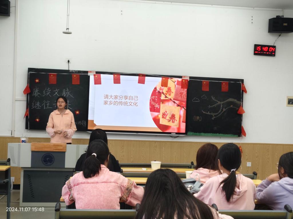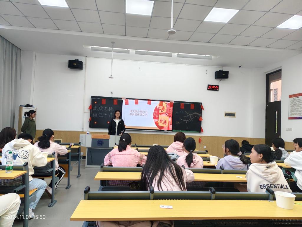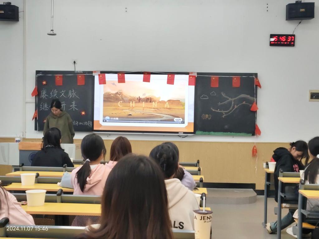 (通讯员:白思羽,辅导员:高梦瑶)为增强员工的民族自豪感和爱国情怀,培养积极的人生态度,树立正确价值观,提高个人的文化素养和思想品德,会计2402团支部特别策划以“扬传统文化之帆,颂千年华夏之蕴”为主题的团日活动,于2024年11月7日在教1-108召开。参加本次活动的成员为会计2402团支部全体,本次活动由胡维晗同学主持。