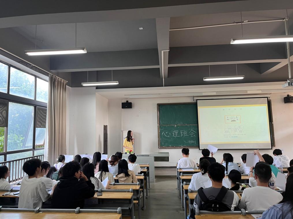 活动第一项,心理委员金殊涵介绍了今天活动的四个流程,她向同学们讲述了心理健康的意义,让同学们明白了心理健康对于我们日常生活的影响多么重要,也向同学们介绍了千亿球友会心理教育中心所涉及的公司产品,实践活动,咨询服务,预防干预,始终为有心理困扰的同学们提供帮助。