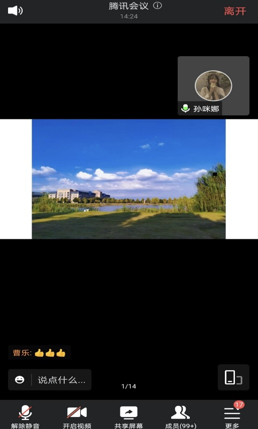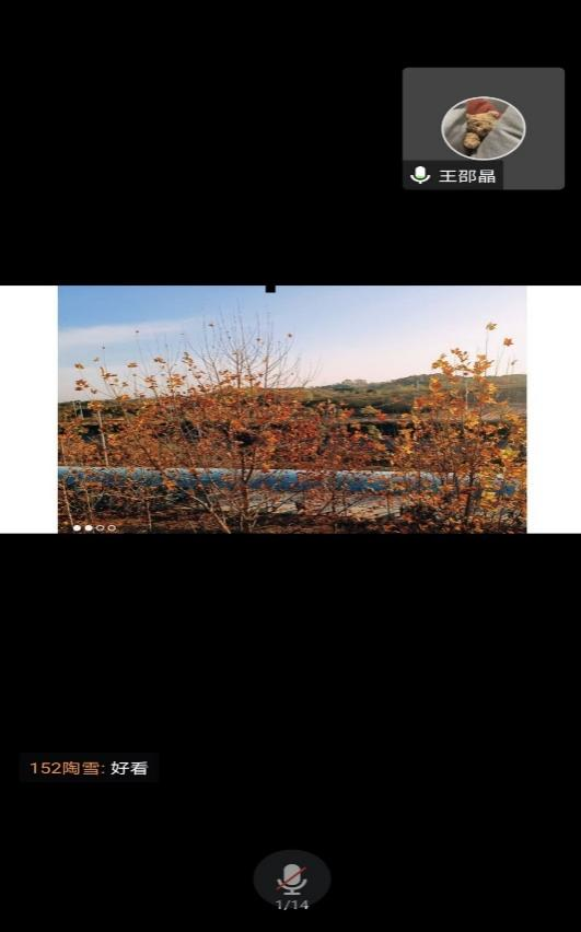 在12月1日晚上,通过线上会议由同学们一起选出前三名。9名选手依次进行了2-3分钟的作品解说,说明了自己拍的这张照片的由来,以及这张照片所表达的涵义和自己拍这张照片的原因和内心感受,大方自信的表达给作品又增添了一份几分新意。或是对自己打完球后路上的风景、或是对湖边美丽夕阳的感叹、或是对林荫绿色小道及落日余晖的赞美,一切看似平凡且渺小的事物,在选手的眼里都是那样的难能可贵和意义非凡。同时在选手介绍时,许多同学都与选手们进行了互动。该摄影比赛记载了激动人心、感动至深的瞬间、留住温馨和笑容、分享了校园生活的每一分每一刻,释放同学们的青春激情,增强了自信,使同学认识到在疫情封校下的校园生活的多姿多彩。