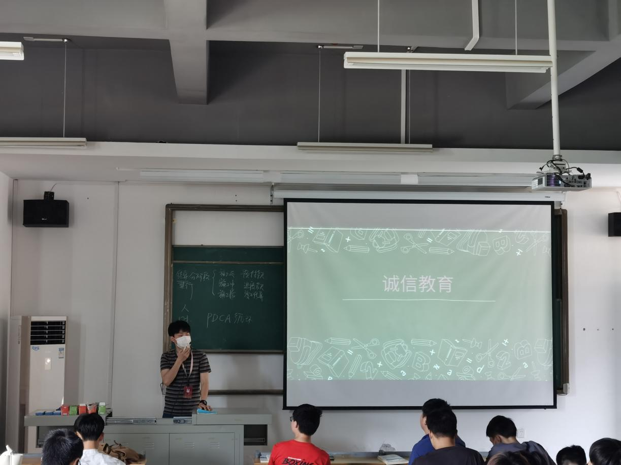 会上,韩老师先以何为诚信和不诚信切入,着重讲到诚信考试的重要性。他说到“诚信”组合起来就形成了一个内外兼备,具有丰富内涵的词汇,其基本含义是指诚信无欺,讲求信用。自古以来,诚信是中华民族几千年灿烂历史文化的重要组成部分。诚信被中华民族视为自身的行为规范和道德修养,形成具有丰富内涵的诚信观。对于员工来说,不完成作业、考试作弊、抄袭别人作业甚至不听老师的教导在宿舍使用大功率电器等行为都算是不诚信的行为。