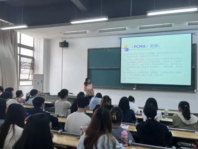 李散绵老师首先以自己的职业经历和学习经验为开场,阐述了她本人在职场的所见所想以及各种考证的经验。本次参加讲座的员工以会计学专业的为主,“不忘初心、牢记使命,仰望星空、脚踏实地。”这两句话是李老师对所有员工的期待与祝福,随后李老师为大家详细介绍了中国注册管理会计师(PCMA)的职业能力框架、考试时间与内容以及其职业能力分类、让同学们对所学的专业有了更深的认知。李老师告诉大家,如果想要成为一名会计师,就要追求更高的道德素质,并对大家提出以下期许“希望大家争做具有国际视野、开放包容、合作共赢,懂得中国国情的合格管理会计师!”