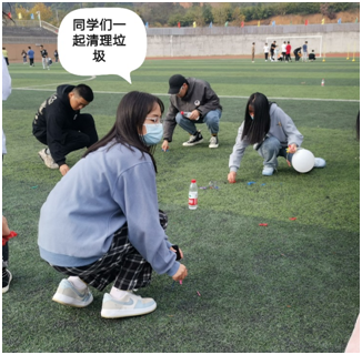 当夕阳的余晖慢慢洒满操场时,本次活动也接近尾声,最后,由团支书廖婧雯同学为获胜同学分发小奖品,并为此次活动进行总结。活动结束后,全班同学一起清理了操场上的垃圾。此次活动不仅让同学们走出宿舍,放下手机电脑,切身感受到运动的魅力,更加加强了锻炼意识,还提高了团队合作能力,增强集体荣誉感。此次活动完美结束,希望1901团支部越来越好,同学们的感情永不褪色。