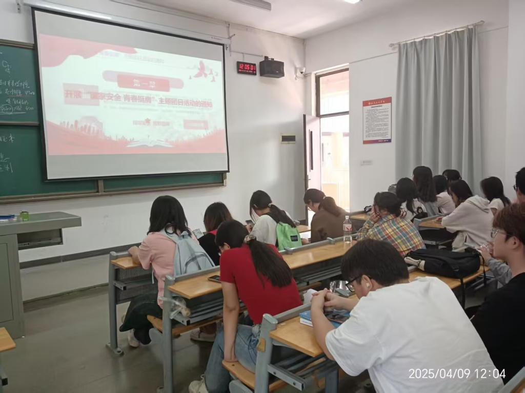 2025年4月9日,注会2403团支部在教1-104教室举办了以“国家安全,青春挺膺”为主题的特色团日活动。持续开展“国家安全,青春挺膺”活动,推动国家安全教育在青年群体中常态化开展,使总体国家安全观深入人心,通过实践活动和亲身参与,青年能够更深刻地理解和体会国家安全的重要性,从而增强教育的实际效果。