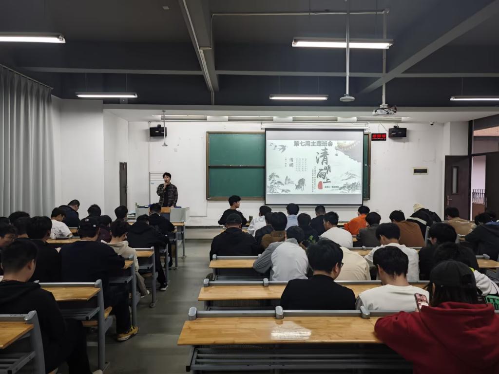 "清明节不仅是自然节气,更是蕴含着慎终追远、感恩奋进的民族精神密码。"韩东老师以山西介休绵山寒食文化传说开篇,结合《淮南子》等古籍记载,生动讲述清明从"节气"到"节日"的历史演变。并给同学们讲述了清明节各地不同的习俗,同时告诉同学们,清明祭祖不是一个节日的形式,而是能与已故亲人相见的机会。一座小小的土包或墓碑,承载着更多的是不尽的思念。接下来韩东老师提出“在工作后,我们有多少时间可以陪着父母和家人身边”的问题,引起同学们的思考。在韩东老师的引导下,将“珍惜与家人的时光”与“假期不仅是放假,更是可以回到家人身边”的思想播种在同学们的心中。过程中同学们积极回答,受益匪浅。