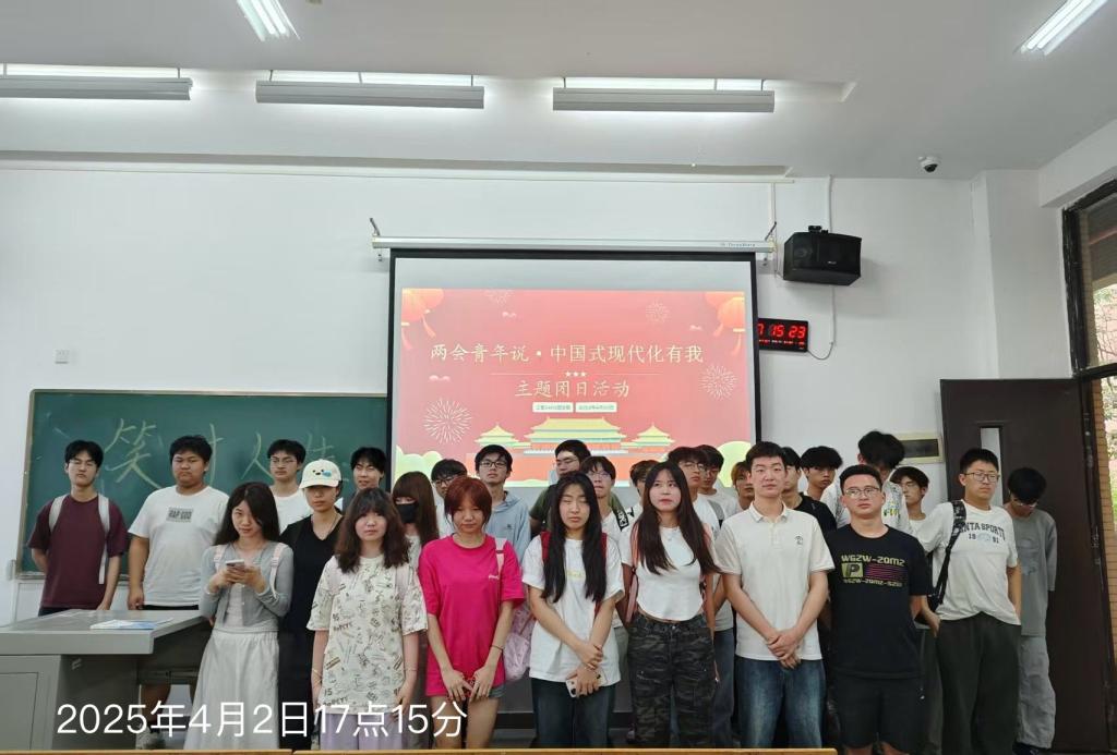 在 2025 年 4 月 2 日,工管 2401 团支部于教一 106 成功举办了 “两会青年说,中国式现代化有我” 主题团日活动,旨在引导青年团员深入了解两会精神,明确在中国式现代化进程中的责任与担当。